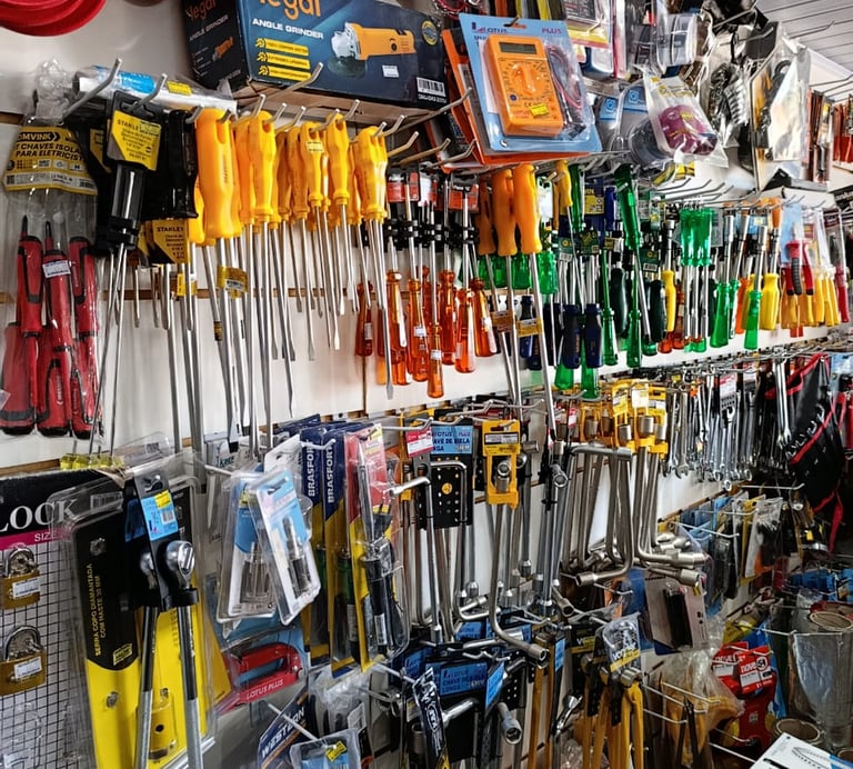 Contamos com um amplo portfólio de ferragens em geral, incluindo parafusos, porcas, arruelas, dobradiças, fechaduras, trilhos, puxadores, acessórios para portas e janelas, além de ferramentas manuais e ferramentas elétricas das melhores marcas do mercado. Trabalhamos também com itens para manutenção predial, montagem de móveis, instalações hidráulicas e ajustes estruturais, garantindo praticidade e segurança em cada projeto.